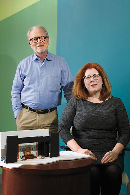 Short North Stage Artistic Director Edward Carignan with new Executive Director Edna Mae Berkey who began working for the theater in April 2019. Photo © Larry Hamill. “I had parents who raised me that way,” says Berkey, with a laugh. “Mom brought home records and movies of every great musical out there, and Dad was an Air Force munitions expert, so he had me out in his workshop helping him. Mom would take me to the theater, then Dad would put me on his motorcycle for a ride.”