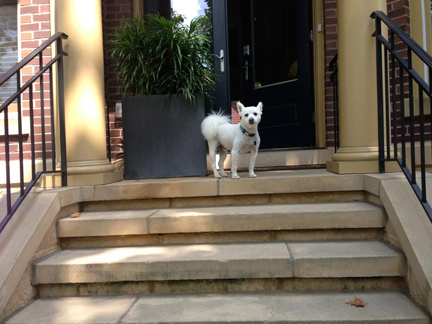 Scout, a darling American Eskimo, waits to greet the Friends of Goodale Park. FGP Holiday Gala on December 4, 2013